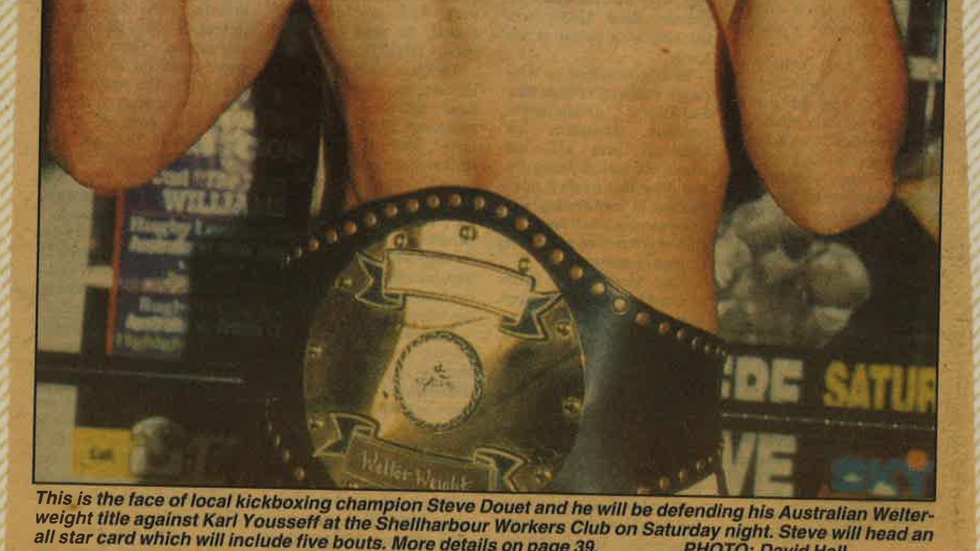 A championship belt for Steve Douet, designed and sewn in the 1990s.