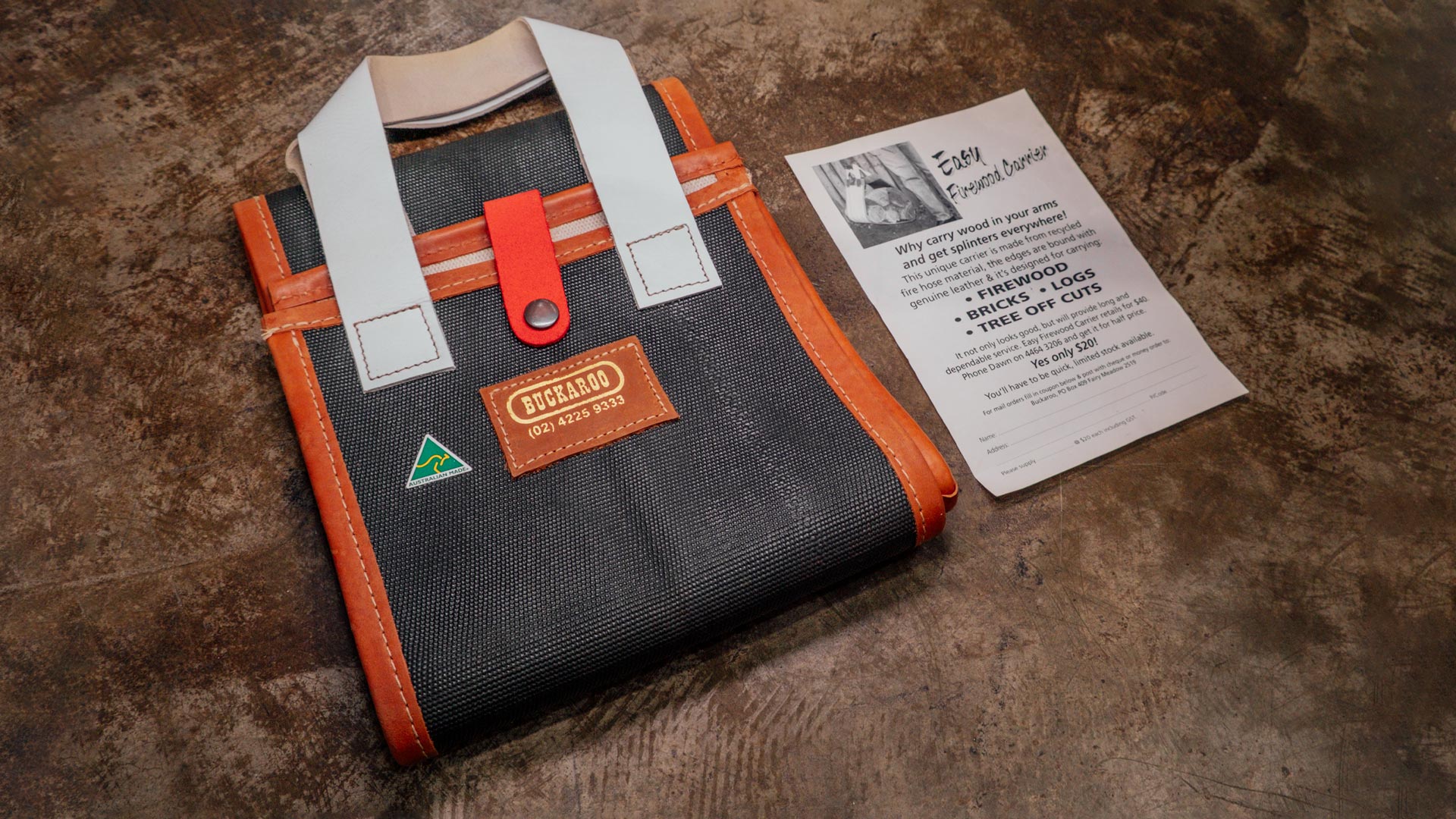 Ken was sick of carrying armfuls of wood from the backyard to the house so this clever design was born from a need to make this task more effective. The choice of fire hose material meant it was the ideal textile for supporting weight and reducing possible stretch.