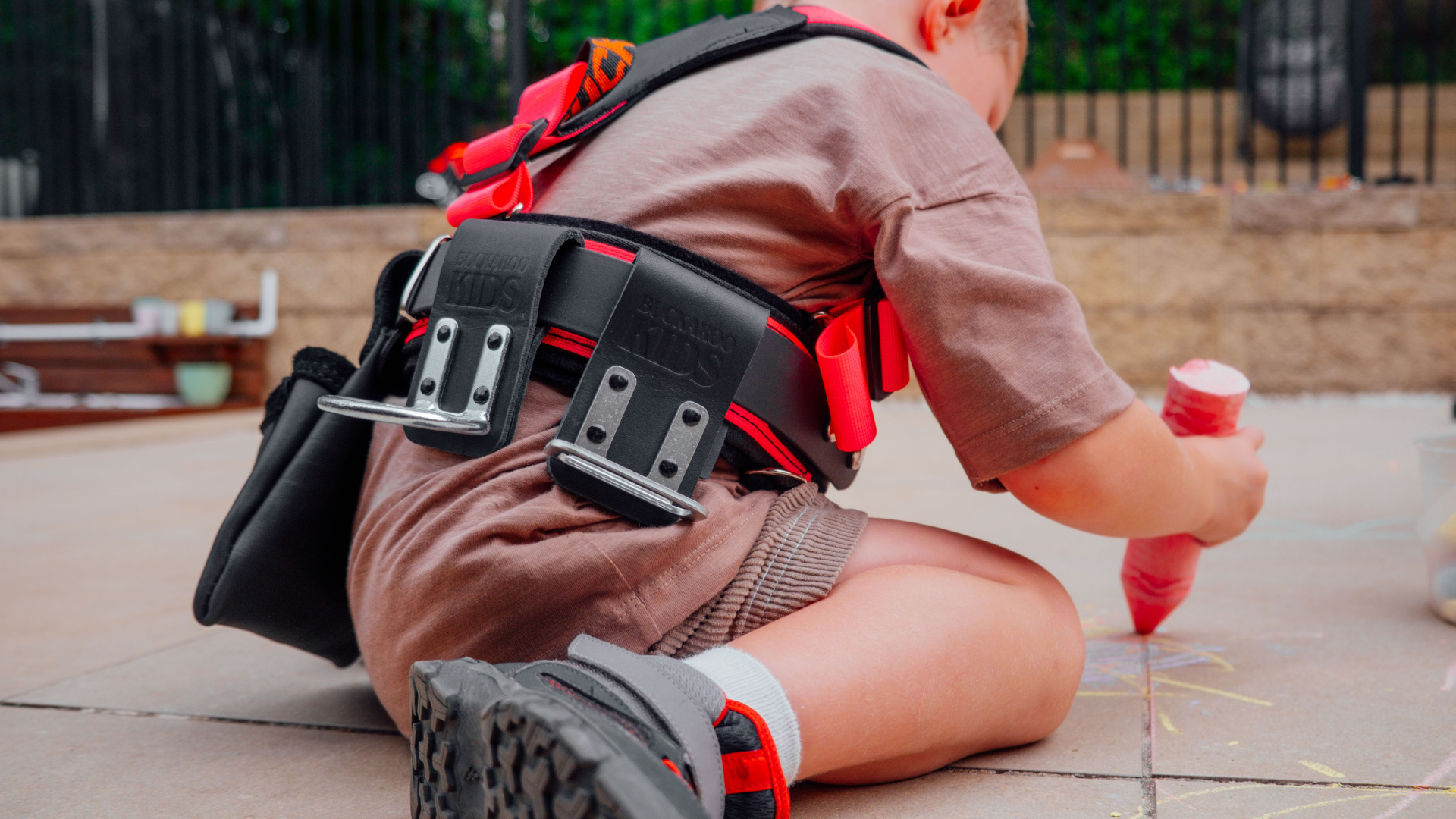 The first thing we noticed was that the Kids Tool Belt was quite heavy and rigid in its materiality, aligning perhaps too closely to our All-rounder belt, to the detriment of the comfort for play.
