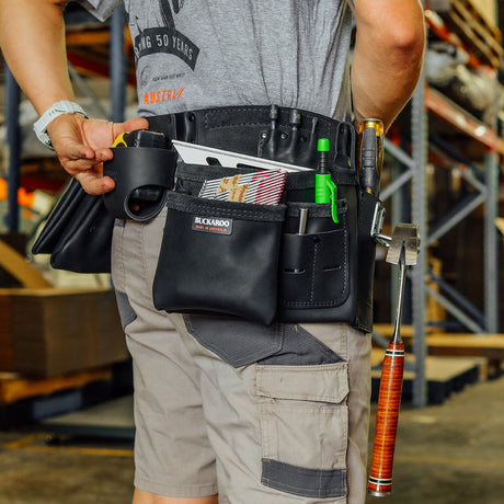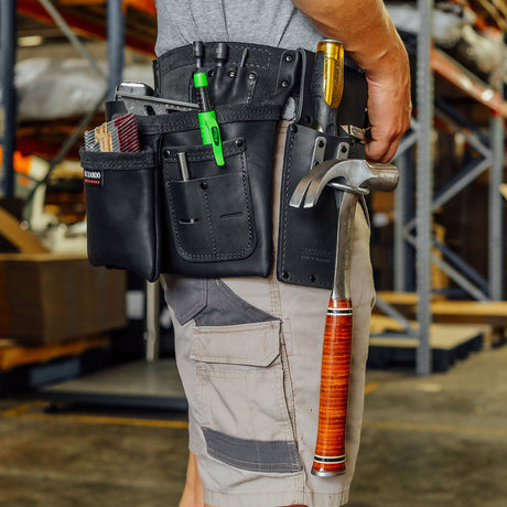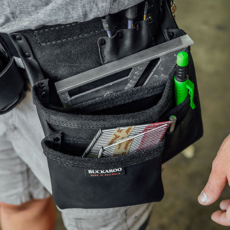 The Apron Belt is a staple. Fitted with symmetrical pouches it's the all-in-one solution for tools and fasteners. Whether you’re left or right handed, move the tape clip and hammer frog to whichever side suits you.